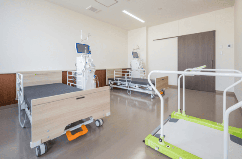 他の患者さまと接触せず、別の入り口から入退室が可能な個室透析室を完備しています。